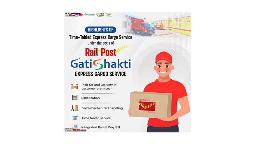 भारतीय रेलवे और भारतीय डाक ने औपचारिक रूप से रेल पोस्ट गति शक्ति एक्सप्रेस कार्गो सेवा, रेलवे के संयुक्त पार्सल उत्पाद और भारतीय डाक की शुरुआत की है।