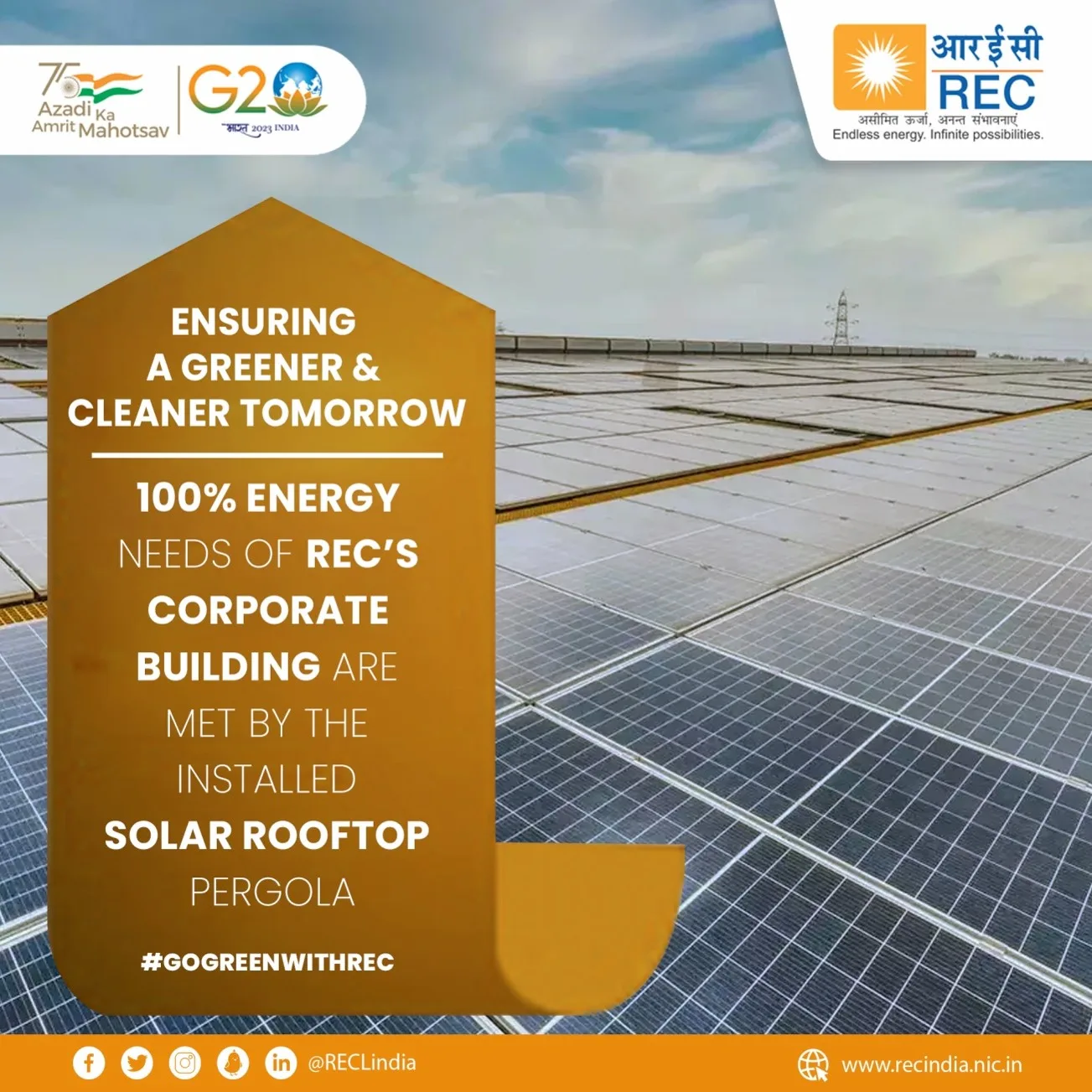 The REC Corporate Office is an ultra-modern workspace that strikes a balance between growth and sustainability. 100% of the energy needs of the office are met through the solar roof-top pergola. 70% of the ambient temperature is achieved through radiant cooling, without the use of conventional air conditioners. It redefines the way a modern workspace can contribute to Climate Action.