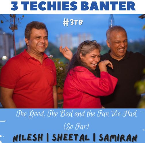 3 Techies Banter (#3TB) is a #funtech podcast launched in December 2021 by Samiran Ghosh, Nilesh Patankar and Sheetal Choksi who are also the creators of unblox. They launched the podcast with the objective of making tech conversational for all. They want to encourage healthy debate and encourage everyday people to voice their opinions on the future of tech. In the podcast, they marry tech with the economics and finance of tech to make conversations interesting and ultimately hope that 3 Techies Banter will become the Funtech source of choice for all.