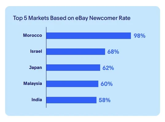 The ability of new enterprises to enter the market is a key element of economic growth. This report defined newcomer as a seller who must have no sales on eBay in 2016 or later and break the mark of $10,000 USD on the marketplace in 2020.In nine of the markets analyzed in this report, over 50% of small businesses on eBay were newcomers to the platform in 2020. Also, the percentage of new small businesses exceeded 25% in all 18 countries studied.