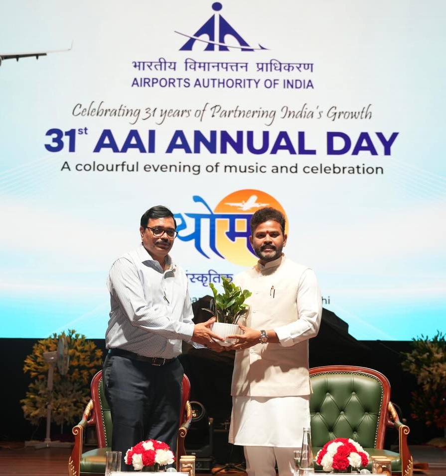 NEW DELHI. Union Civil Aviation Minister Shri Ram Mohan Naidu attended the 31st Annual Day celebrations of the Airports Authority of India, along with MoCA Secretary Shri Samir Kumar Sinha, AAI Chairman Shri Vipin Kumar and senior officials. He highlighted AAI’s key role in advancing the UDAN scheme and improving air connectivity across the country, stating that airports reflect India’s global image through modern infrastructure rooted in local heritage. The Minister also noted passenger-friendly initiatives such as UDAN Yatri Café, Flybrary, free Wi-Fi and Kids Zones, and congratulated AAI staff for their contribution towards making the organization a world-class airport developer and operator.