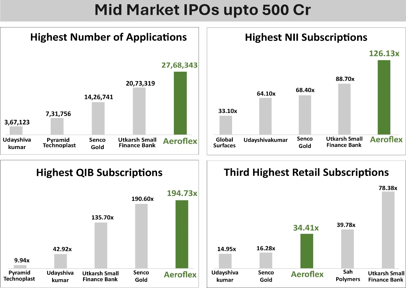 INR 351 Crores Initial Public Offering (IPO) of Aeroflex Industries was subscribed 97 times, receiving a response worth INR 24,500 Crores