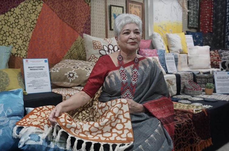 Laila Tyabji, Founder, Member and Chairperson, Dastkar with AmEx Dastkar products