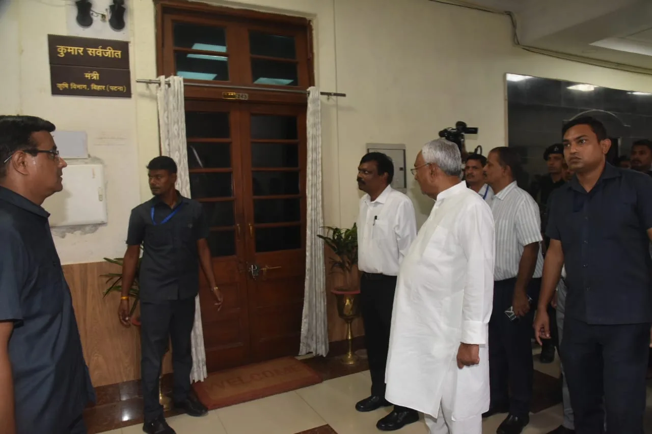 पटना। मुख्यमंत्री नीतीश कुमार ने मंगलवार को विकास भवन तथा विश्वेश्वरैया भवन स्थित विभिन्न विभागों के कार्यालयों का निरीक्षण किया। निरीक्षण के दौरान मुख्यमंत्री नीतीश कुमार, शिक्षा मंत्री चन्द्रशेखर, गन्ना उद्योग मंत्री आलोक कुमार मेहता, उद्योग मंत्री समीर कुमार महासेठ, परिवहन मंत्री शीला कुमारी, कृषि मंत्री कुमार सर्वजीत के कार्यालय पहुंचे, लेकिन वे सभी मंत्री अपने कार्यालय कक्ष में उपस्थित नहीं थे। मद्यनिषेध, उत्पाद एवं निबंधन मंत्री सुनील कुमार अपने कार्यालय कक्ष में उपस्थित थे।