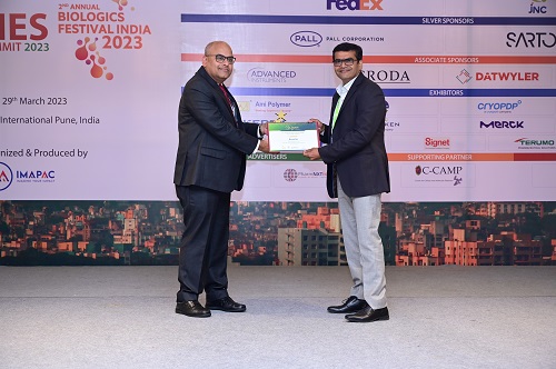 Ganesh Bade – Head of Biopharma India Middle East & Africa (IMEA), Avantor (right) receiving the accolade at the Awards ceremony
