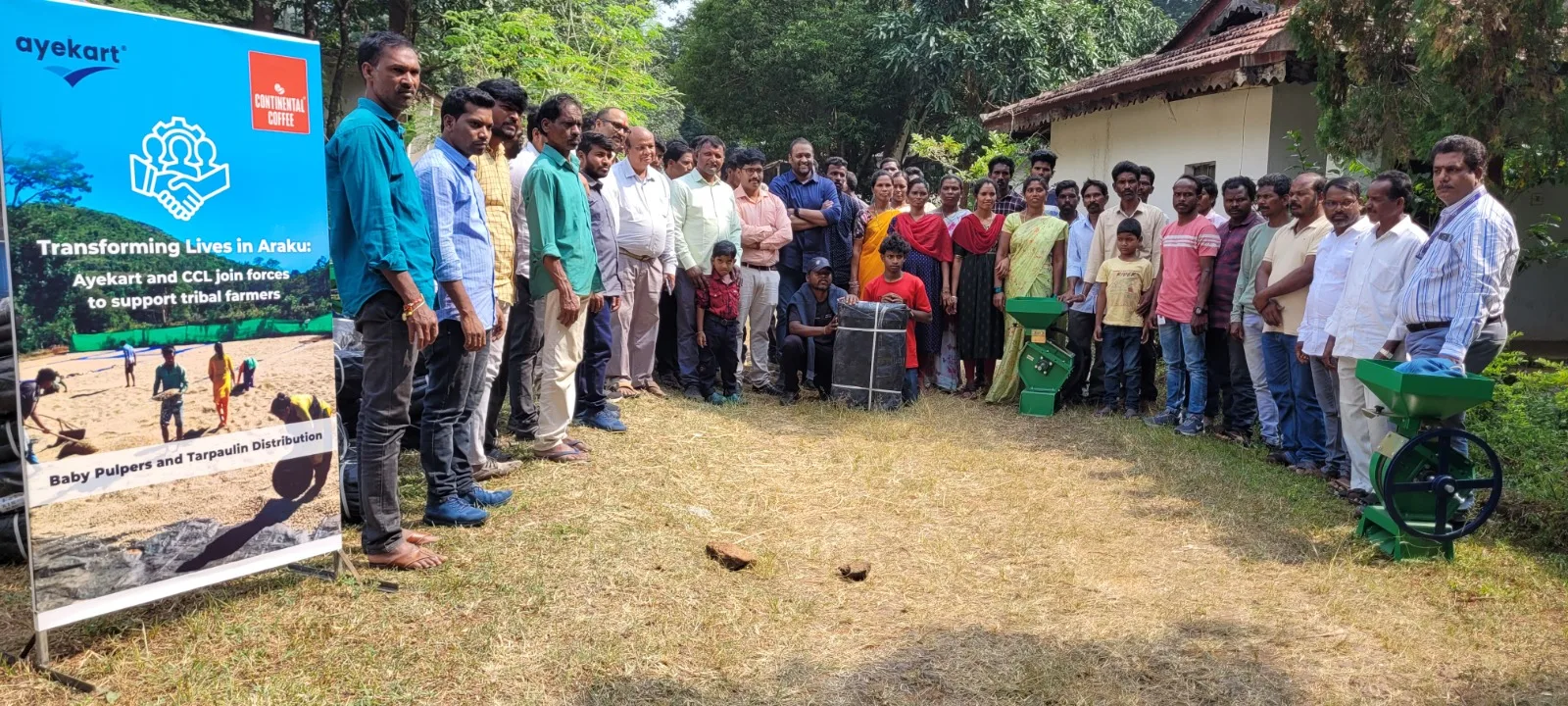 The upcoming coffee season is set to commence in November, with this year’s season slightly ahead of schedule. To mark this occasion and support the farmers, Ayekart and CCL distributed tarpaulins and baby pulpers, generously provided by CCL as part of their CSR activity and other ongoing initiatives.