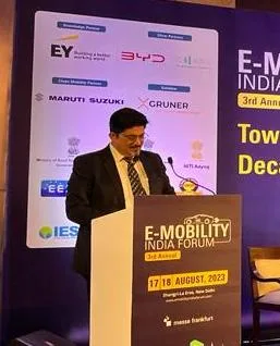 PSU MantraEMobility India Forum by NewsmantraAugust 18, 2023 Share0 CEO_EESL Mr Vishal Kapoor addressed the members of EMobility India Forum organised by MF_IND.He emphasized the significance of establishing a supportive environment for adoption of Ebuses Convergence CESL.
