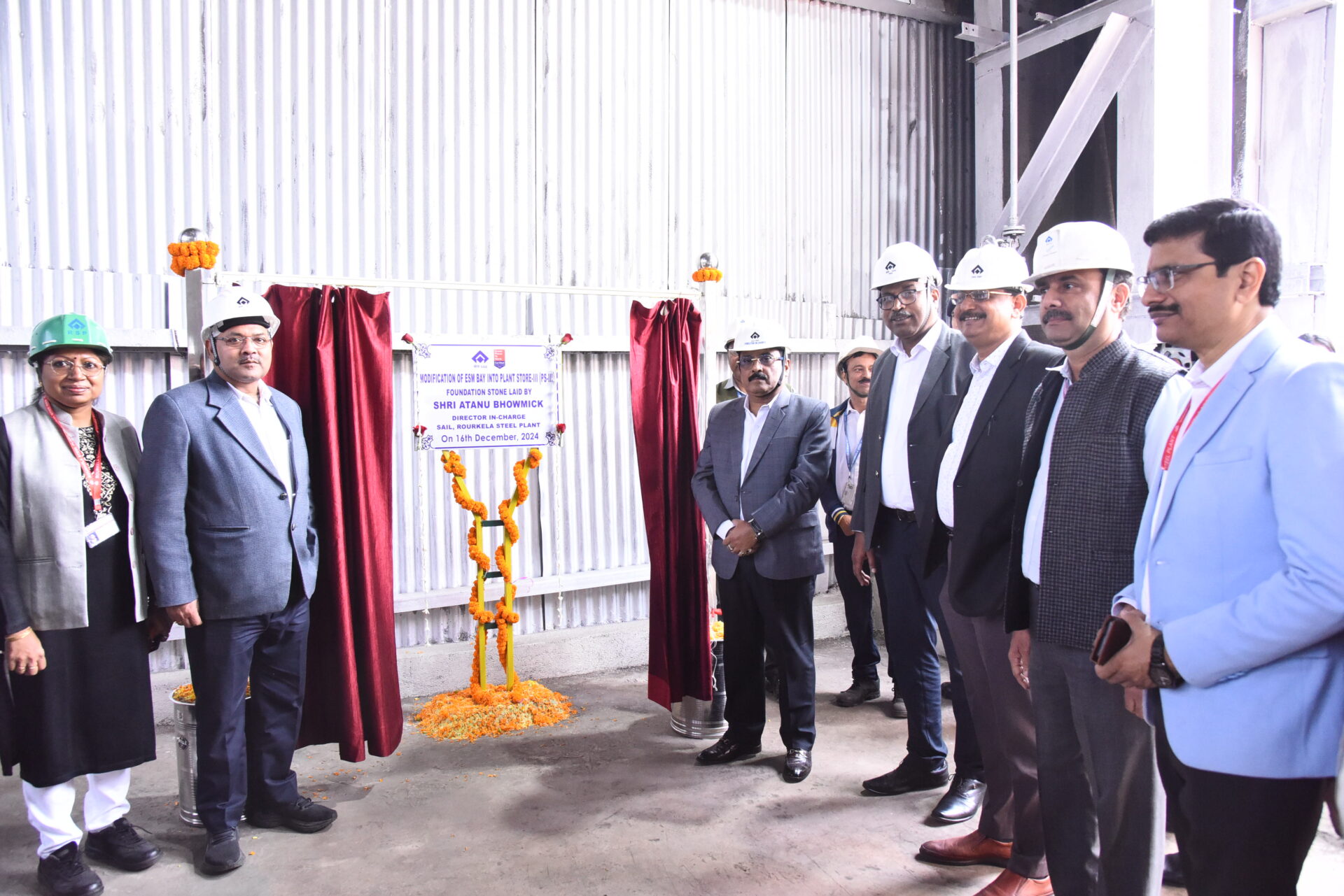 The Foundation stone for the modification of the ESM Bay into Plant Store-3 of Stores Department of SAIL, Rourkela Steel Plant (RSP), was laid by Mr. Atanu Bhowmick, Director In-Charge, RSP on 16th December 2024. Mr. Tarun Misra, ED (HR), Mr. A K Behuria, ED (F&A), Mr. Sudip Pal Chowdhury, ED (Projects), Mr. Anil Kumar, ED (MM) and many CGMs, HoDs, and other senior officers were present on the occasion.