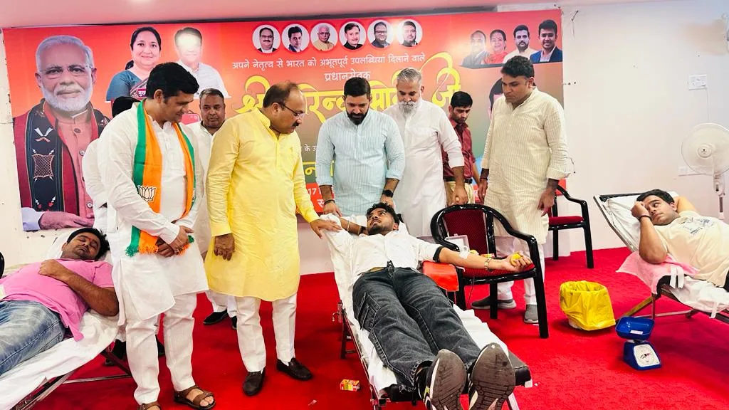 गुरुग्राम। गुरुग्राम के विधायक सुधीर सिंगला ने प्रधानमंत्री नरेंद्र मोदी का जन्मदिन शहर में अलग-अलग स्थानों पर सेवा दिवस के रूप में मनाया। जिला कार्यालय पर युवा मोर्चा की ओर से रक्तदान शिविर से इसकी शुरुआत की गई। विधायक सुधीर सिंगला ने सभी को प्रधानमंत्री नरेंद्र मोदी के जन्मदिन की शुभकामनाएं दी।