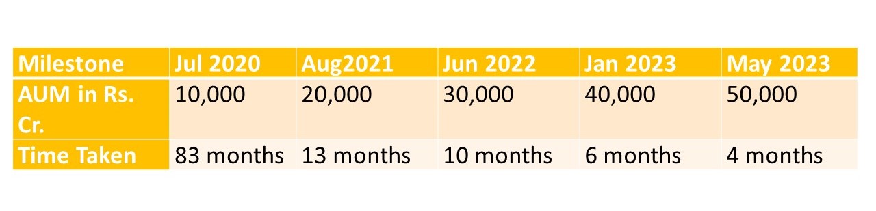 HDFC Pension Management Company Ltd., the fastest growing legacy Pension Fund Manager under the National Pension System (NPS) has crossed the milestone of Rs. 50,000 cr. of Assets Under Management (AUM) on May 15th 2023. Since its launch in 2013, the Company, a wholly owned subsidiary of HDFC Life Insurance Company Ltd., has grown at a fast rate (see table below). The AUM size has grown 400% in a span of thirty three (33) months from a base AUM of Rs. 10,000 Cr. which was achieved in July 2020.