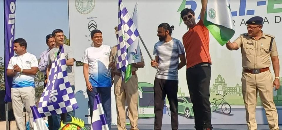 Jayesh Ranjan, Principal Secretary, Industries & Commerce (I&C) and Information Technology (IT), Govt. of Telangana with other dignitaries flagging off Rally-E in Hyderabad
