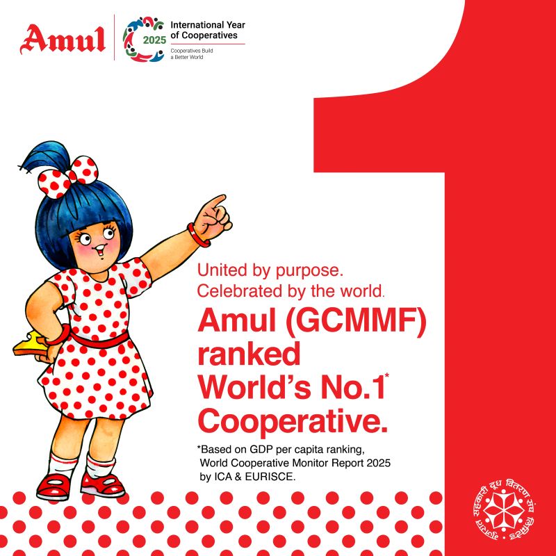 Gujarat Cooperative Milk Marketing Federation Ltd (GCMMF), the owner of Amul , has secured the top position in the global ranking of cooperatives, followed by Indian Farmers Fertiliser Cooperative Ltd (IFFCO) in second place.