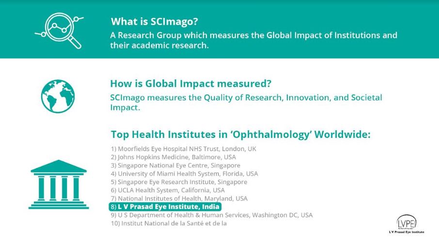 SCImago Institutions Rankings 2023 ranks LVPEI eighth worldwide in Ophthalmology (health) category.