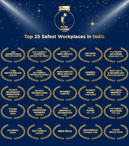 Marico, TCE, Uber, Tata Power and Volvo were among the 25 companies declared ‘India’s Top Safest Workplaces‘ at the recently concluded KelpHR PoSH AWARDS 2022 hosted by KelpHR – a company focusing on creating safe, happy and inclusive workplaces through best-in-class HR practices.