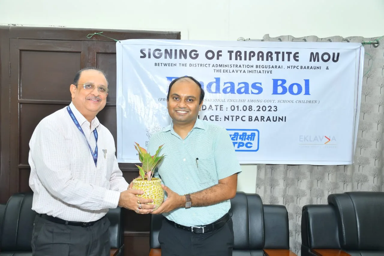 इसके लिए बेगूसराय के जिलाधिकारी रोशन कुशवाहा, एनटीपीसी बरौनी के परियोजना प्रमुख राजीव खन्ना, एकलव्य पहल की सीईओ अनुराधा सहगल, एकलव्य पहल के संस्थापक अनिंद्य मुखर्जी, जीएम प्रोजेक्ट मनोज दुबे, एडीएम (बेगूसराय) राजेश कुमार सिंह, सीनियर डिप्टी कलेक्टर सुनंदा कुमारी, ओएसडी अनीश कुमार, डीपीओ (स्थापना) रवीन्द्र कुमार और अन्य प्रशासनिक अधिकारियों एवं एनटीपीसी अधिकारियों की उपस्थिति में समझौता ज्ञापन पर हस्ताक्षर किये गए।