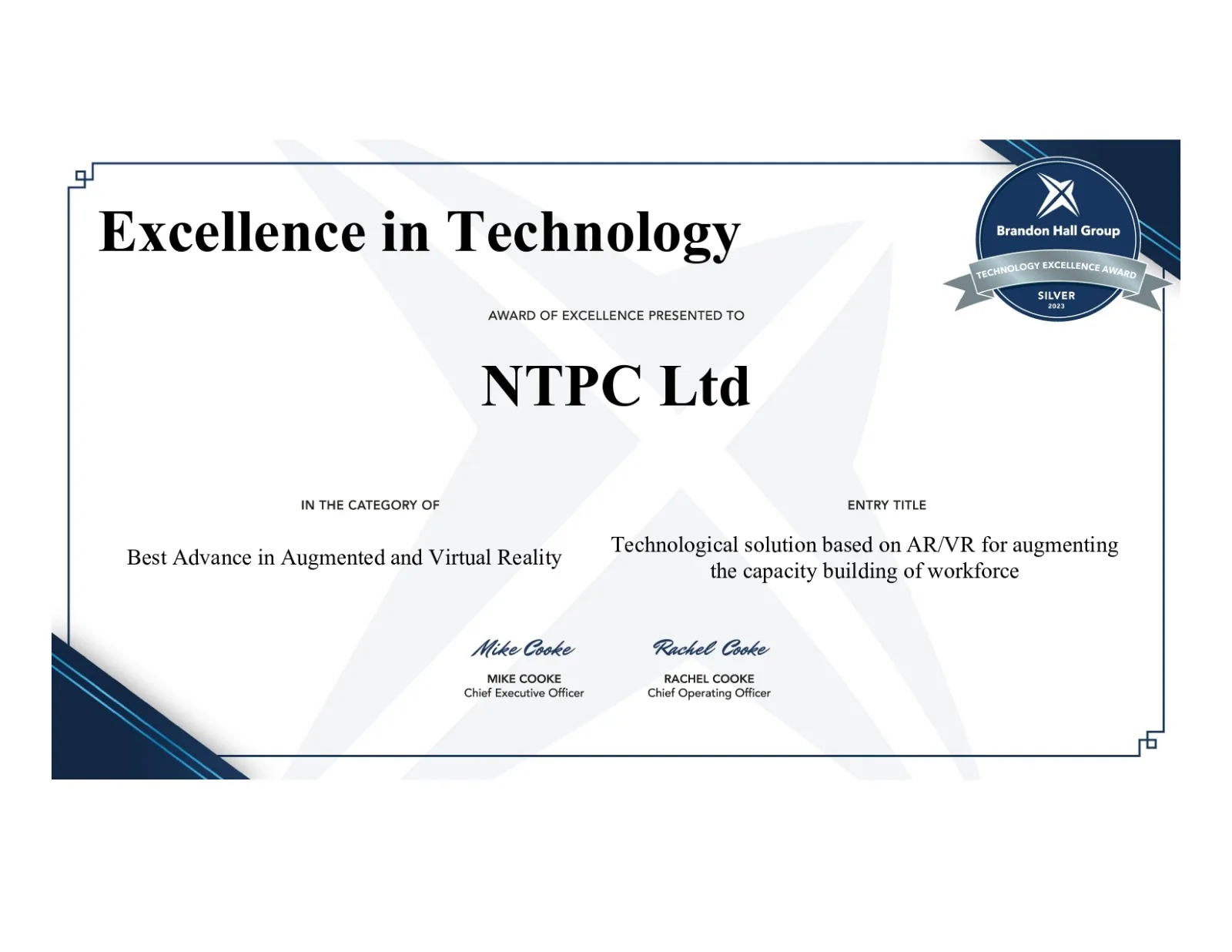 Mumbai, 9th December 2023 : NTPC, India’s largest integrated power company, has been declared as the winner at the Brandon Hall Group’s Excellence in Technology Awards 2023 in an online broadcast held on 7th December, 2023. NTPC stands out as the only PSU in India to secure dual accolades in the Technology Awards category.