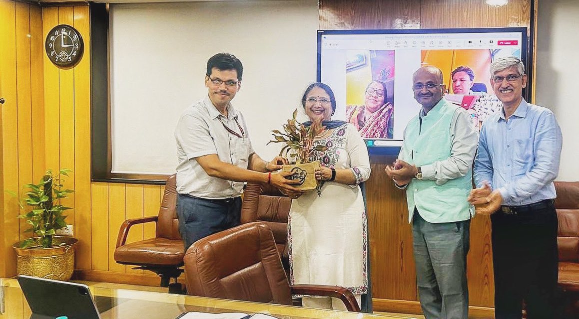Smt. Parminder Chopra, CMD along with Shri Rajiv Ranjan Jha, Director (Projects), Shri Manoj Sharma, Director (Commercial) welcoming Shri Shashank Misra, Joint Secretary (Distribution), Ministry of Power as Government Nominee Director on the Board of PFC during the Board Meeting.