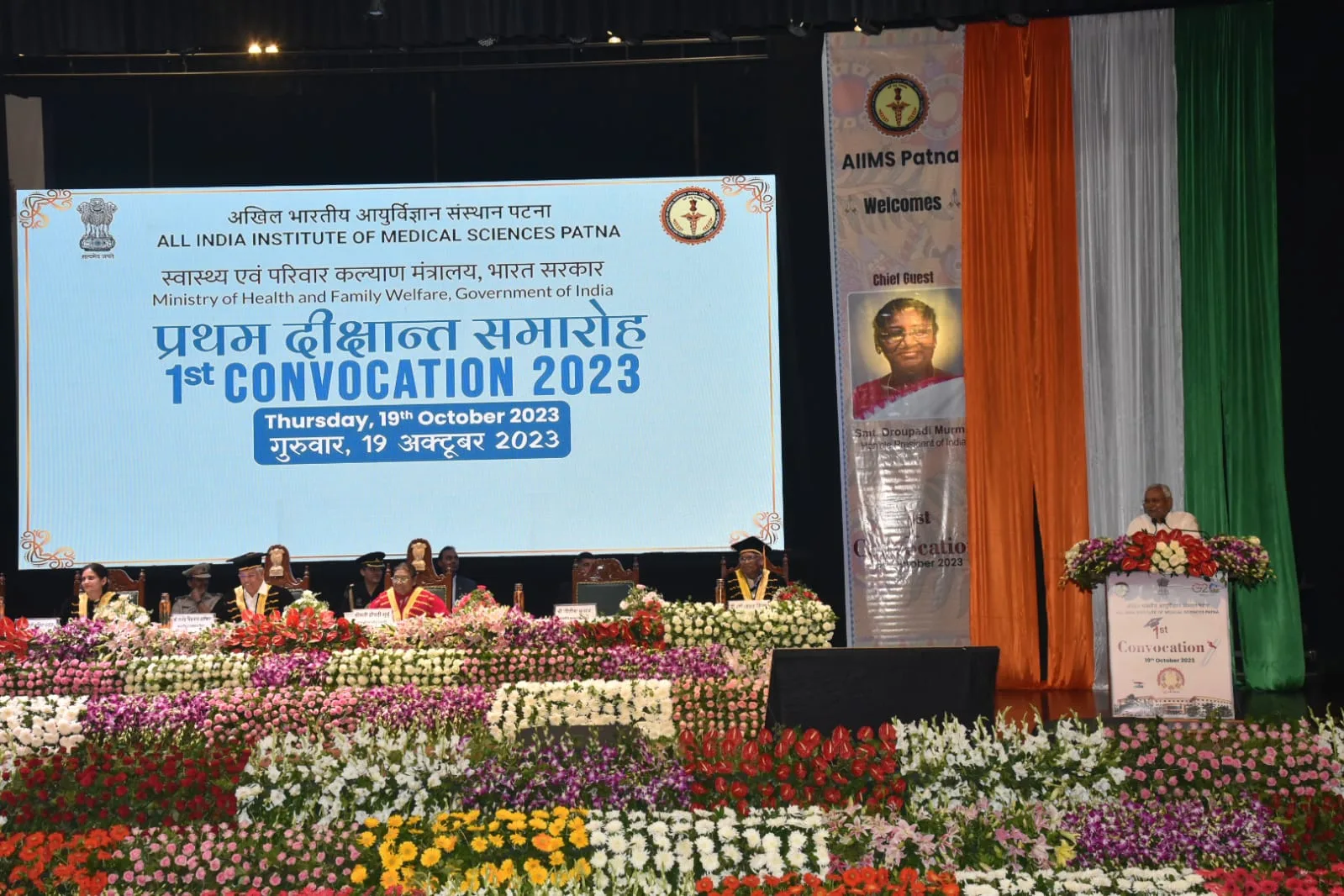 एम्स के दीक्षांत समारोह को संबोधित करते हुए राष्ट्रपति द्रौपदी मुर्मू ने कहा कि यहां आकर मुझे काफी खुशी हो रही है। आज का दिन आप सबके लिए बहुत खुशी का दिन है। आज एम्स पटना का पहला दीक्षांत समारोह है। मुझे इस बात की खुशी है कि आज डॉक्टरेट की उपाधि पानेवालों में 55 प्रतिशत से अधिक लड़कियां हैं। मैं उन सभी लड़कियों को इसके लिए बधाई देती हूं। माता-पिता और डॉक्टर भगवान के रुप होते हैं। इसलिए डॉक्टर सेवाभाव से कार्य करें। आपको एम्स जैसे संस्थान से उपाधि प्राप्त करने का सौभाग्य प्राप्त हुआ है। हम सब जानते हैं कि पहले भारत में एक ही एम्स था। यह संस्थान अत्यंत सक्षम डॉक्टर तैयार कर रहा है। यहां से उपाधि प्राप्त कर देशवासियों को स्वस्थ रखने की आपके ऊपर बड़ी जिम्मेदारी है। पिछले कुछ वर्षों में कई मेडिकल कॉलेज और अस्पताल बनाये गये हैं, जिससे लोगों को बहुत सहूलियत मिल रही है।