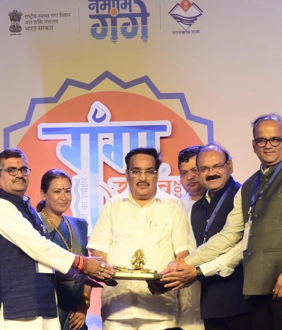 POWERGRID received appreciation of support for CSR fund contribution as Highest Donor to National Mission of Clean Ganga by Shri C. R. Paatil. Union Jal Shakti Minister, Govt. of India, during Ganga Utsav at Haridwar. The appreciation was received by Dr. Yatindra Dwivedi, Director (Personnel) and Shri Ram Naresh Tiwari & Shri Chetan Bansilal Kankaria, Independent Directors of POWERGRID.