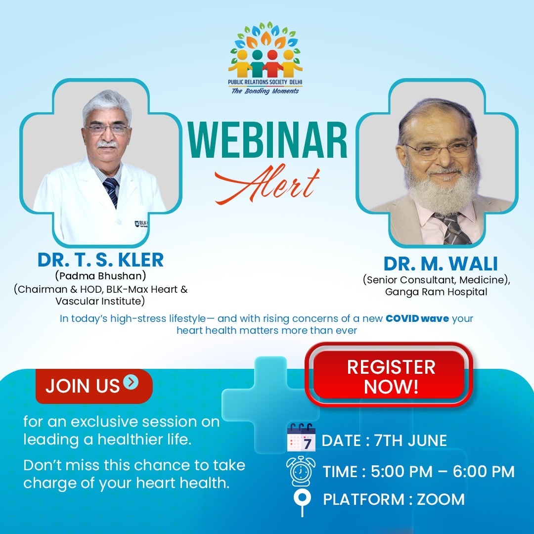 NEW DELHI. The Public Relations Society, Delhi (PRSD) has organised a special webinar on Health and Wellness, scheduled for June 7 from 5:00 PM to 6:00 PM. This insightful session aims to promote awareness about the importance of a healthy lifestyle and provide expert medical insights from renowned doctors.