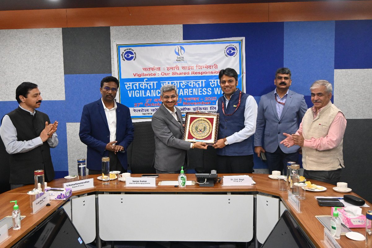 As part of Vigilance Awareness Week (VAW) 2025, RailTel organised an interactive session focused on key aspects of vigilance and ethical governance in the presence of the CMD and all Directors. The session featured insightful addresses by Sh. D. K. Singh, PED/Vigilance, and Sh. Amit Misra, EDV/S&T, who shared their perspectives on strengthening integrity, transparency, and accountability in organisational practices. The event reaffirmed RailTel’s commitment to the theme “Vigilance: Our Shared Responsibility,” promoting a culture of ethical conduct across all levels of the organisation.
