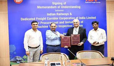 Indian Railways has signed a Memorandum of Understanding (MoU) with the Dedicated Freight Corridor Corporation of India Limited (DFCCIL) for the installation of Machine Vision Based Inspection System (MVIS) for monitoring the health of rolling stock.