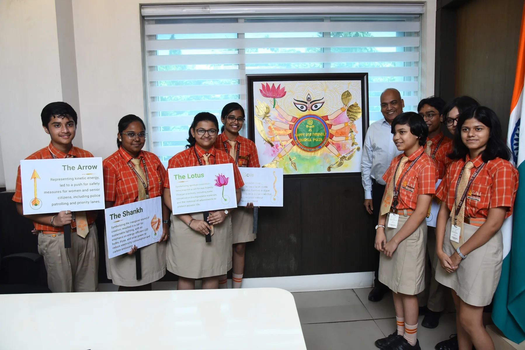 National, 13th October 2023: In an inspiring display of environmental consciousness and commitment to preserving our planet, students from SAI International School met with Shri S.K. Priyadarshi, IPS, Commissioner of Police, BBSR-CTC, Bhubaneswar, to present their innovative initiative for an “Eco-Friendly Durga Puja.” This pioneering approach seeks to harmonize the grandeur of the festival with a deep commitment to environmental preservation.