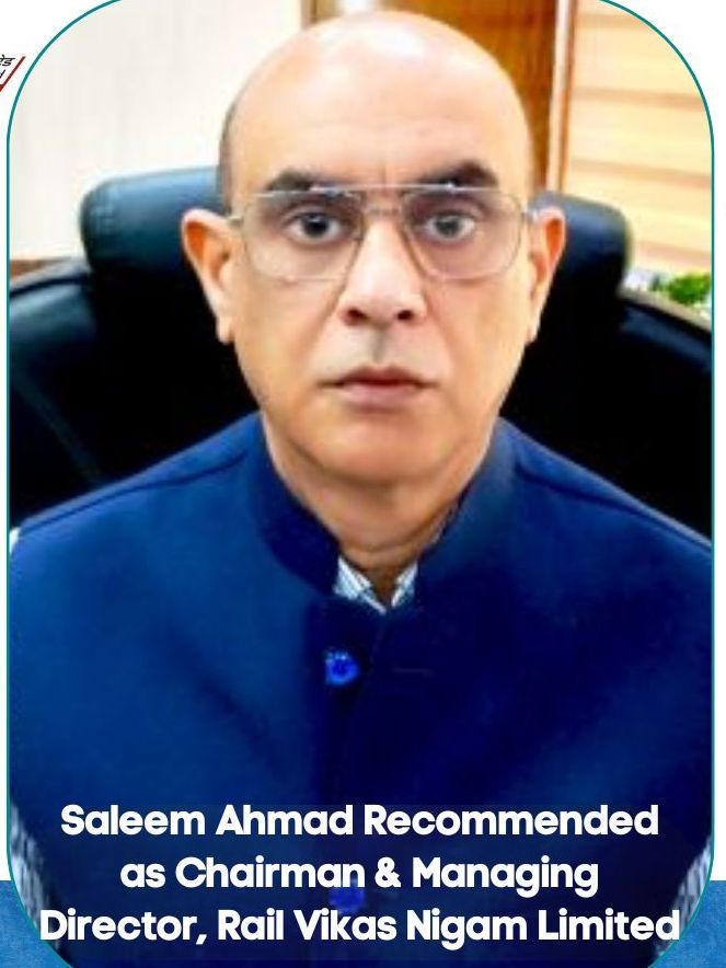 PESB has recommended the name of Shri Saleem Ahmad, Director (Projects) at NBCC (India) Limited, next Chairman and Managing Director (CMD). His leadership in executing large-scale metro, bridge, and tunnel projects—along with his advocacy for sustainable and connected urban mobility—has been widely recognized.