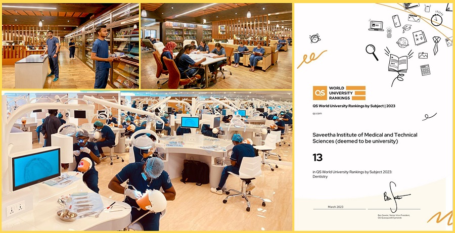 Boosting the standing of the Indian higher education sector on the global stage, Saveetha Institute of Medical and Technical Sciences (Deemed to be University), a leading dental institution in India, has made a path-breaking achievement by getting the Top 13 rank in the QS World Ranking by Subject, released for 2023. This is the first and the only time a dental institution from India – public or private, is ranked within the Top 15 in the subject of dentistry, in the history of the QS global ranking.
