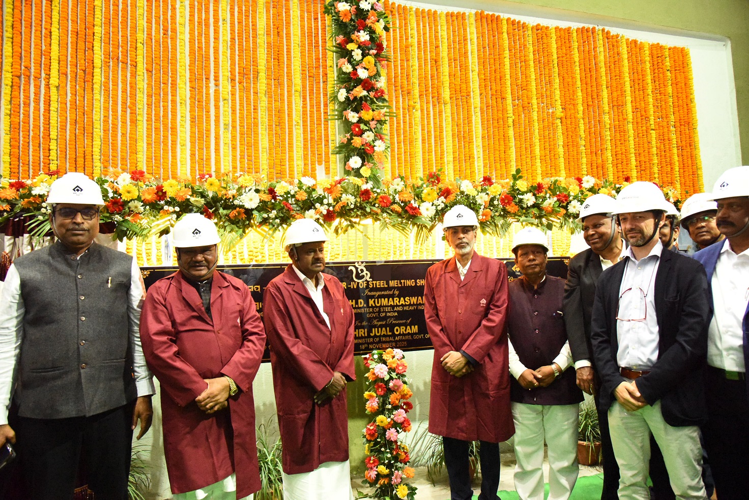 Thereafter the Hon’ble Ministers went to Steel Melting Shop-2 where he inaugurated the State-of-the-art Caster #4. Shri Kumaraswamy keenly observed the operations and the casting of slab in the Caster-4 and congratulated the RSP collective for the successful roll out of the project. “The Government of India, under the dynamic leadership of Prime Minister Shri Narendra Modi, is committed to providing all necessary support for the growth and development of Rourkela Steel Plant,” he added. Shri Oram lauded the efforts of the RSP collective and assured continued support for the progress of the steel plant, recalling his fond memories associated with Plant. Shri Amarendu Prakash also spoke on the occasion and commended the RSP collective for their dedication and performance.