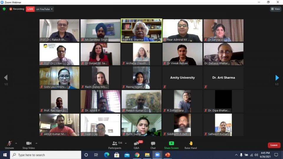Addressing the valedictory function Prof P B Sharma, Vice-Chancellor, Amity University Haryana said, “the new normal of higher education necessitates a thorough revisit of education and research ecosystem in universities and colleges in India to create a great Advantage India in higher education and support the Society and Nation’s development on pathways of inclusive growth and nurturing of human excellence”. Prof Sharma expressed his delight at the august presence of great many eminent educationist who addressed the participants during the Six Days FEP organized by Amity Staff College under the caring patronage of Hon’ble Founder President, Amity Education Group Dr Ashok K Chauhan and visionary leadership of Hon’ble Chancellor Dr Aseem Chauhan. Prof Sharma specially acknowledged the live interactions of the participants and highly intuitive questions raised by them in the chat box as well as in the question answer session for each plenary session. Prof Sharma warmly appreciated the excellent coordination and execution of the FEP by Director Amity Staff College Rear Admiral KK Pandey and Program Director Dr Sanjna Vij.