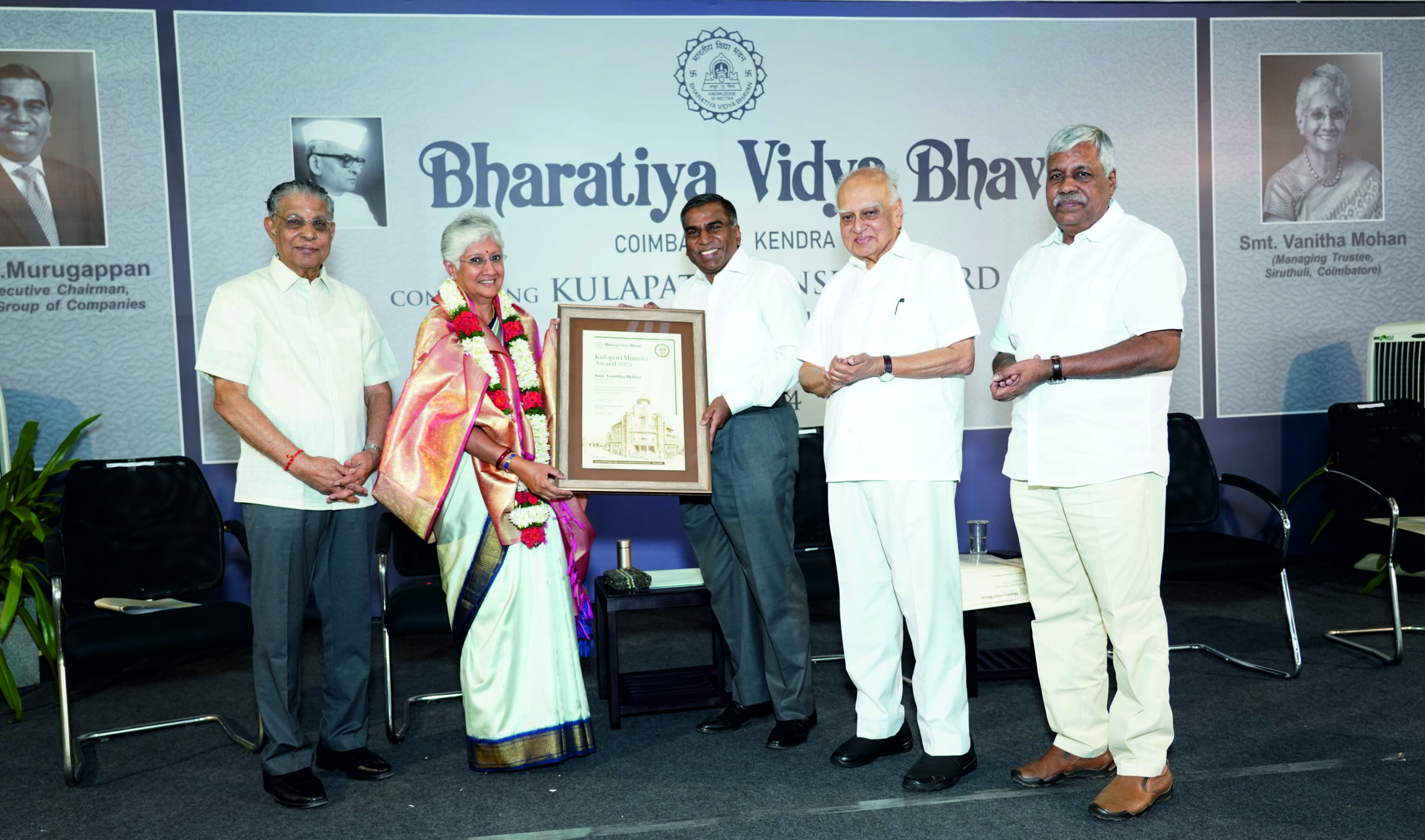 The Kulapati Munshi Award honors individuals who exemplify Dr. Munshi’s spirit of service and nation-building, and by presenting this accolade to Smt. Mohan, the Bharatiya Vidya Bhavan acknowledges her significant contributions to society.