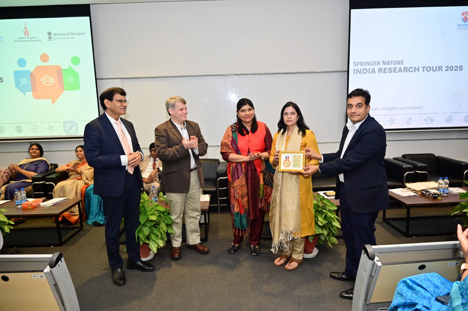 ग्रेटर नोएडा, 9 अक्टूबर 2025: स्प्रिंगर नेचर का इंडिया रिसर्च टूर 2025, जिसे इस सप्ताह की शुरुआत में इंडियन काउंसिल ऑफ सोशल साइंस रिसर्च (ICSSR) से हरी झंडी दिखाकर रवाना किया गया था, अब ग्रेटर नोएडा पहुँच चुका है। यह दौरा देशभर में अपने अभियान का एक महत्वपूर्ण पड़ाव है।