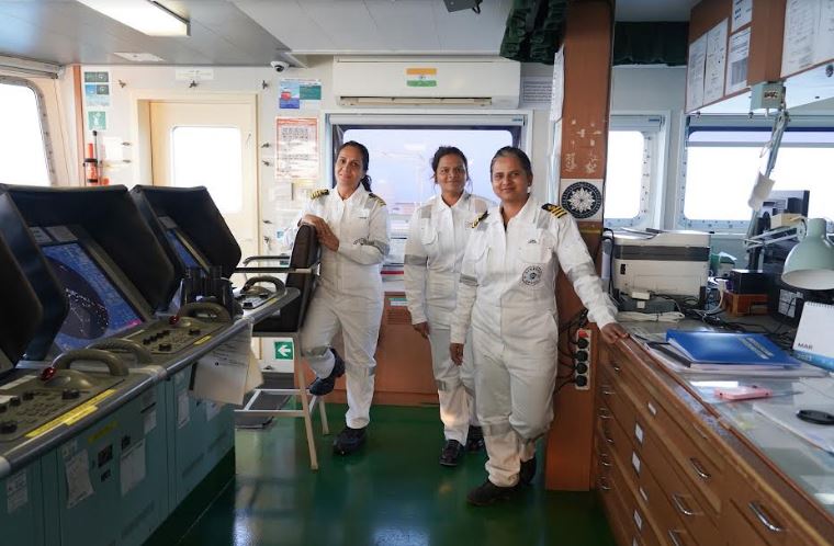 L-R: Third Officer Noopur Mohire, Captain Radhika Menon and Chief Officer Reshma Murkar
