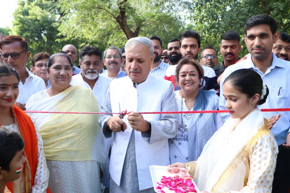 Gurugram : Under the Har Ghar Tiranga Abhiyan, the first Tiranga park has been set up in the city by the district administration. This park has been constructed with the support of the M3M Foundation in the Swatantrata Senani Bhawan located in Civil Lines, Gurugram. In this, 75 national flags of 12-foot height have been installed on the 75th anniversary of independence. Today, the park was inaugurated by the Union Minister of State, Rao Inderjit Singh, as the chief guest. On this occasion, Deputy Commissioner Nishant Yadav along with Dr. Aishwarya Mahajan, President of M3M Foundation were present.