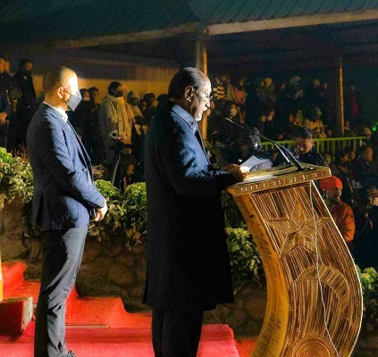 Nagaland Chief Minister Neiphiu Rio addressing the crowd during the closing ceremony of the 23rd Hornbill Festival 2022